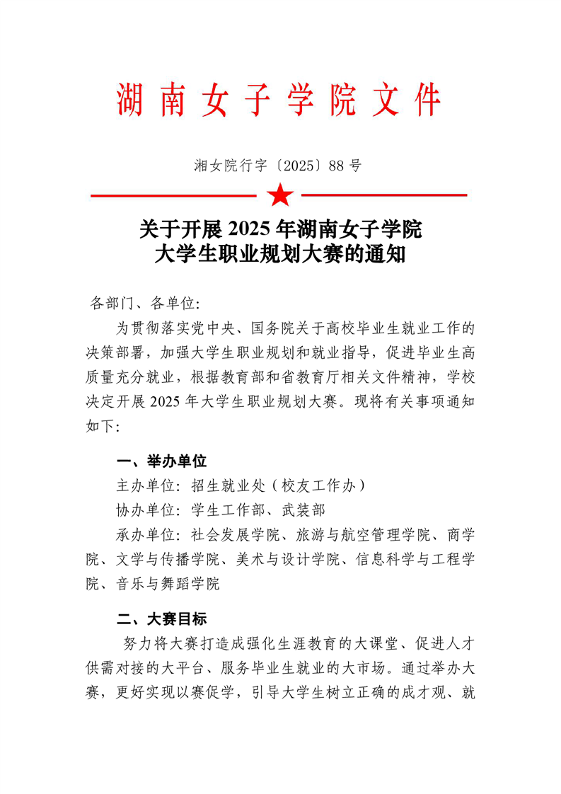 关于开展2025年湖南女子学院大学生职业规划大赛的通知