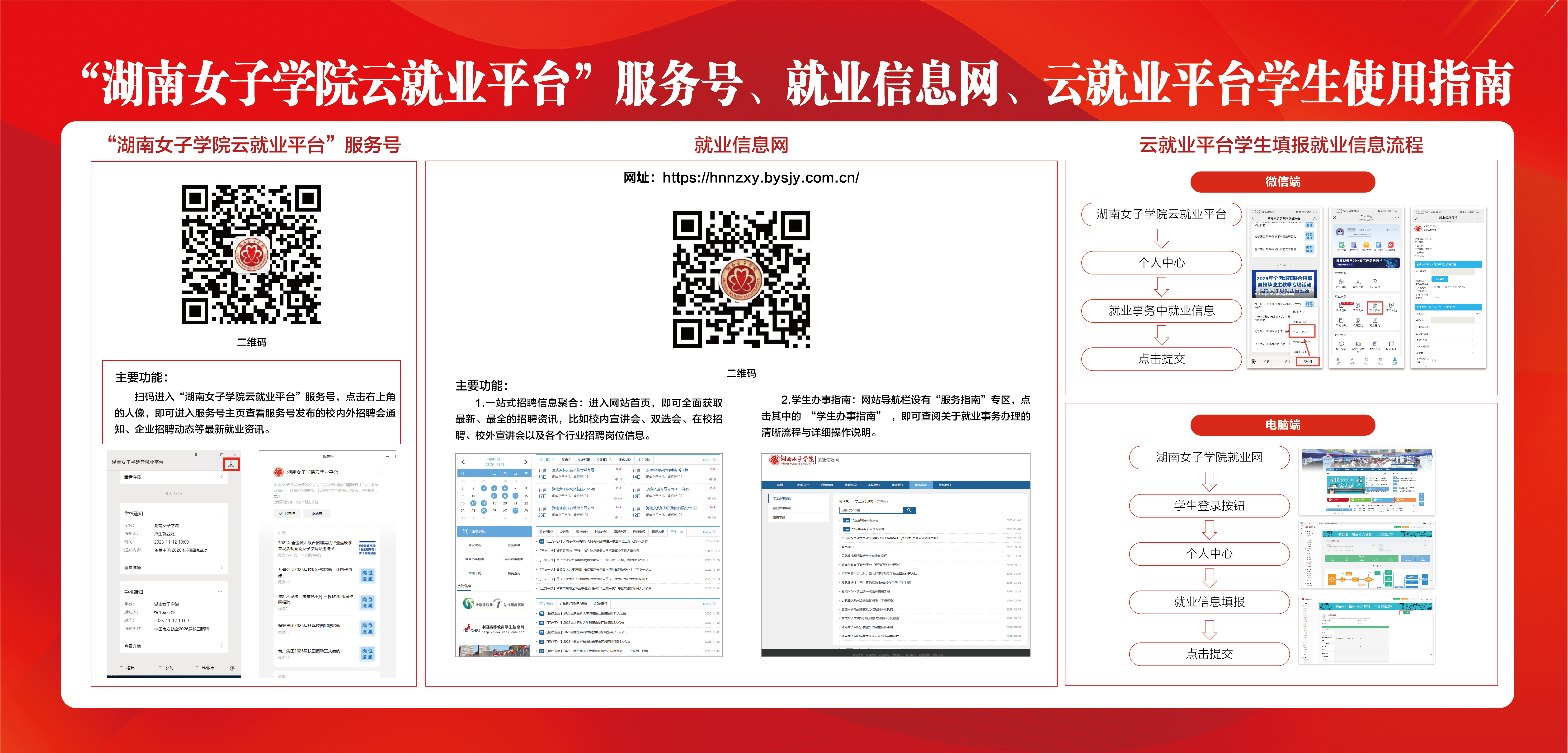 “湖南女子学院云就业平台”服务号、就业信息网、云就业平台学生使用指南