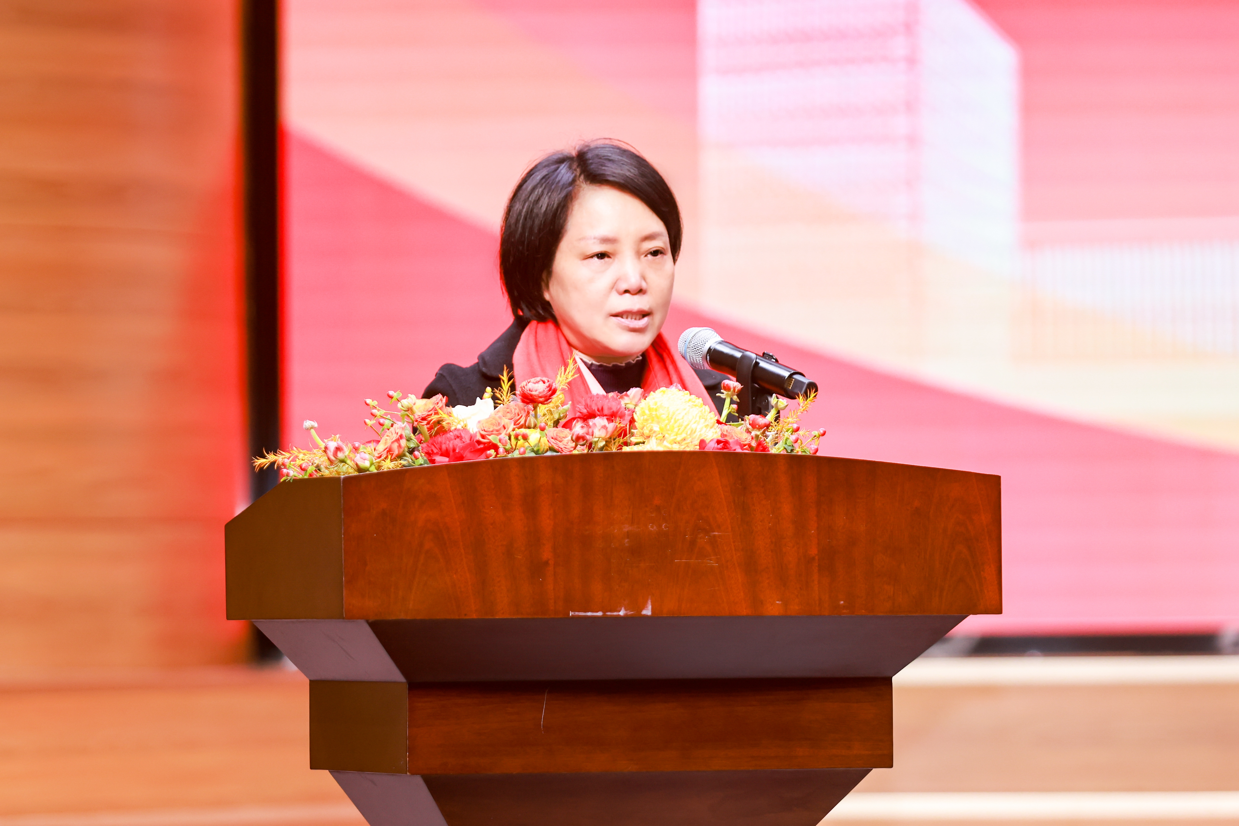 何旭娟在讲话中代表学校向从祖国各地和海外专程返校、共庆母校四十华诞的校友们表达了最热烈的欢迎与最诚挚的感谢。她向校友们介绍了学校未来的发展蓝图,强调学校将始终坚守女性教育初心,紧密对接国家战略与湖南省“三高四新”发展定位,做足“女”字文章,深耕女性教育特色,着力培养担当民族复兴大任的时代新女性。她诚挚邀请广大校友继续担当母校发展的“献策人”、学弟学妹的“引路人”、校企合作的“联络人”和女院品牌的“代言人”,携手开创学校高质量发展新局面。