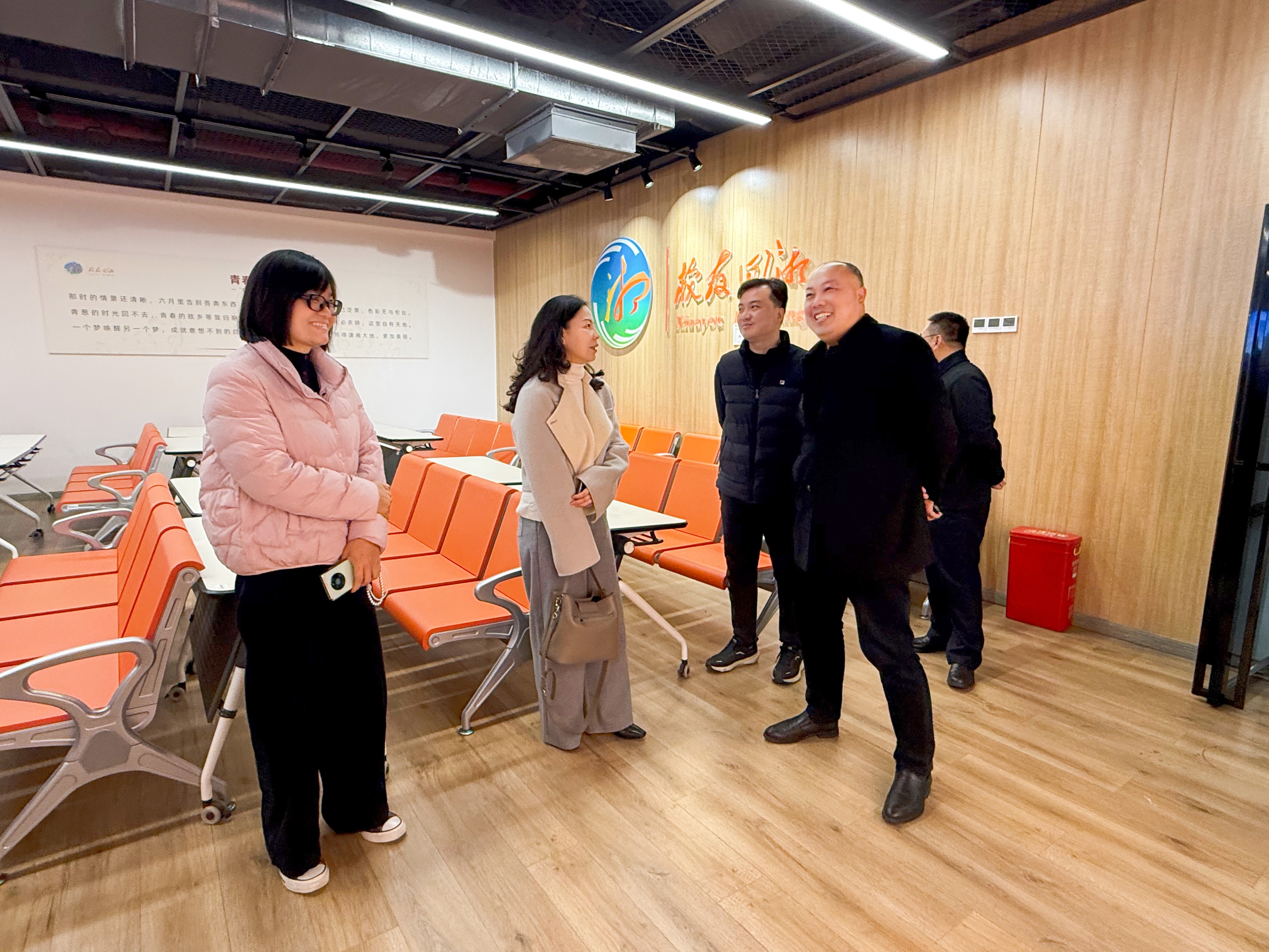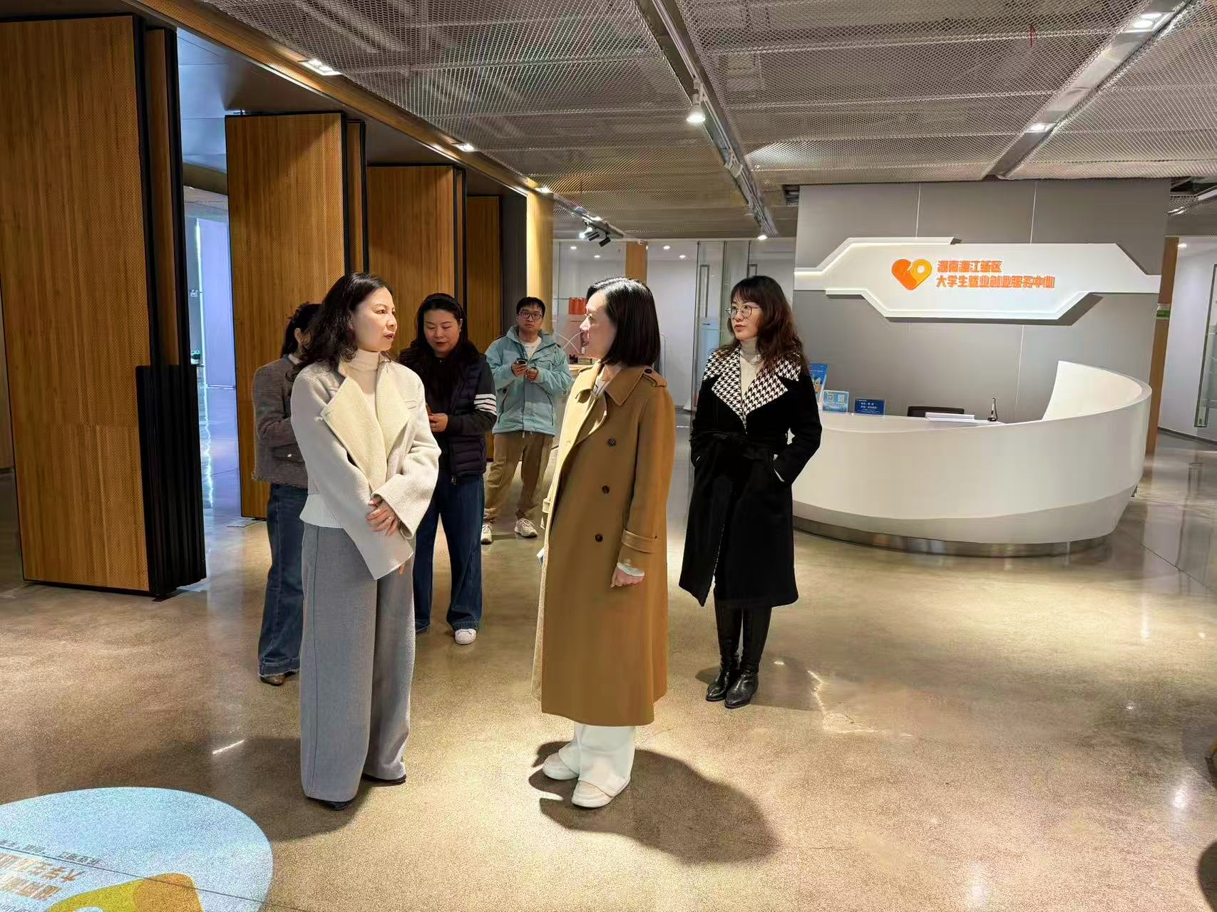 调研组一行首先走访湖南工商大学,实地参观就业工作指导处、校友工作办公室等职能部门,深入了解该校在校地联动、数字平台赋能与常态化校友服务等方面的典型经验。随后,调研组赴湘江新区大学生就业创业服务中心开展现场研学,系统体验了AI智能测聘舱、自助证件照打印终端、简历加油站、沉浸式职业指导室及“直播带岗”演播间等前沿设施,并就运营模式、技术对接、学生使用反馈及政校企协同机制等展开细致询问与记录。