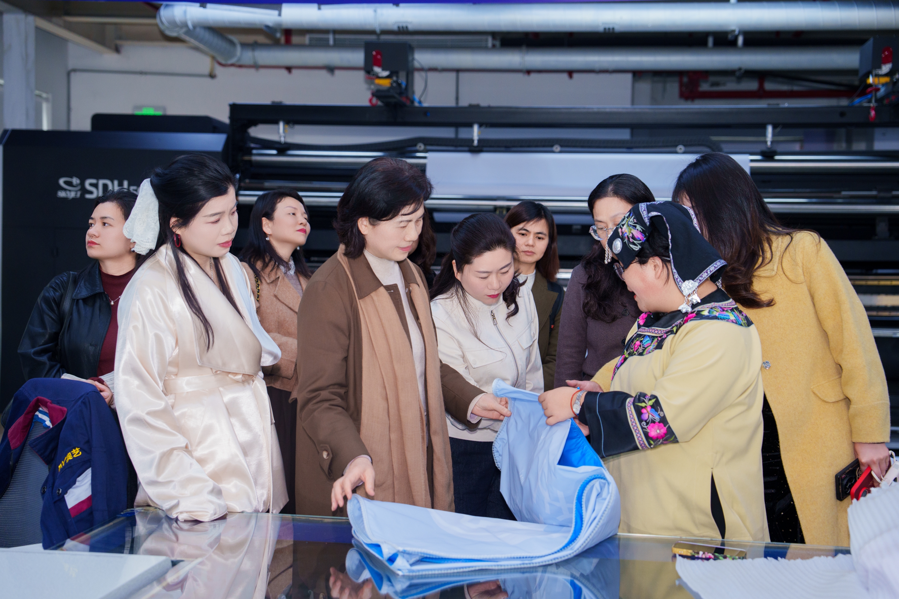 莫文斌一行第一站来到湖南省万丰广告装饰有限责任公司。公司总经理、我校2008届服装设计专业校友、新任长沙校友会副会长杨文竹对母校老师的到访表示热烈欢迎。她带领走访团队参观了生产车间,详细介绍了公司自2010年成立以来的发展历程,分享了个人创业心得,并阐述了公司“构建员工幸福、客户幸福、社会尊敬的百年高收益幸福企业”的愿景,以及立志成为行业领航者的长远目标。